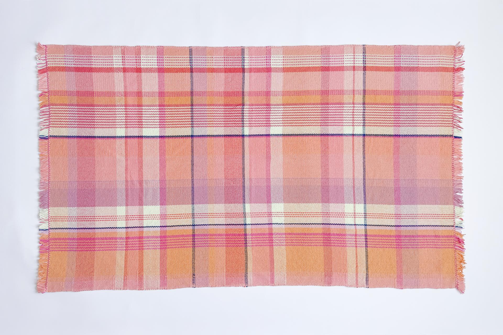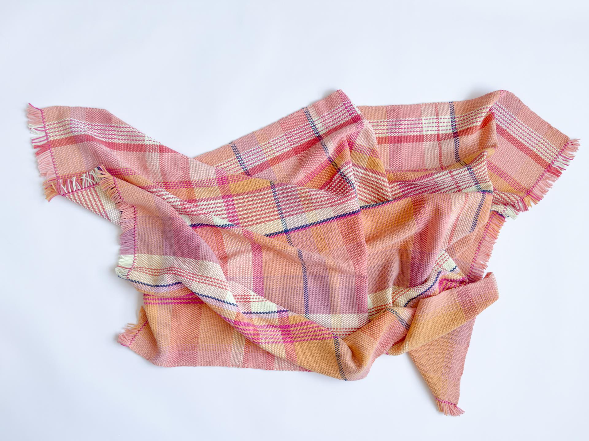 This is a one-of-a-kind blanket hand-woven with a plaid pattern.