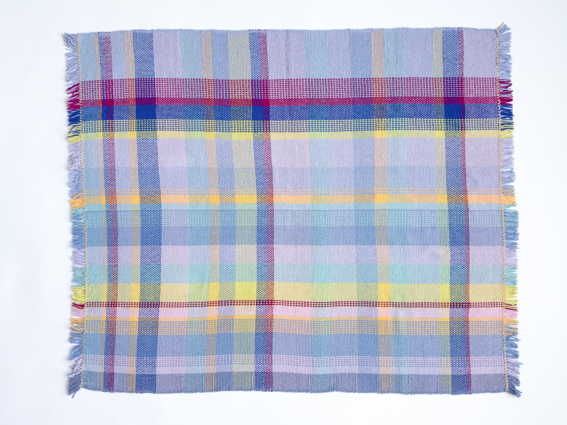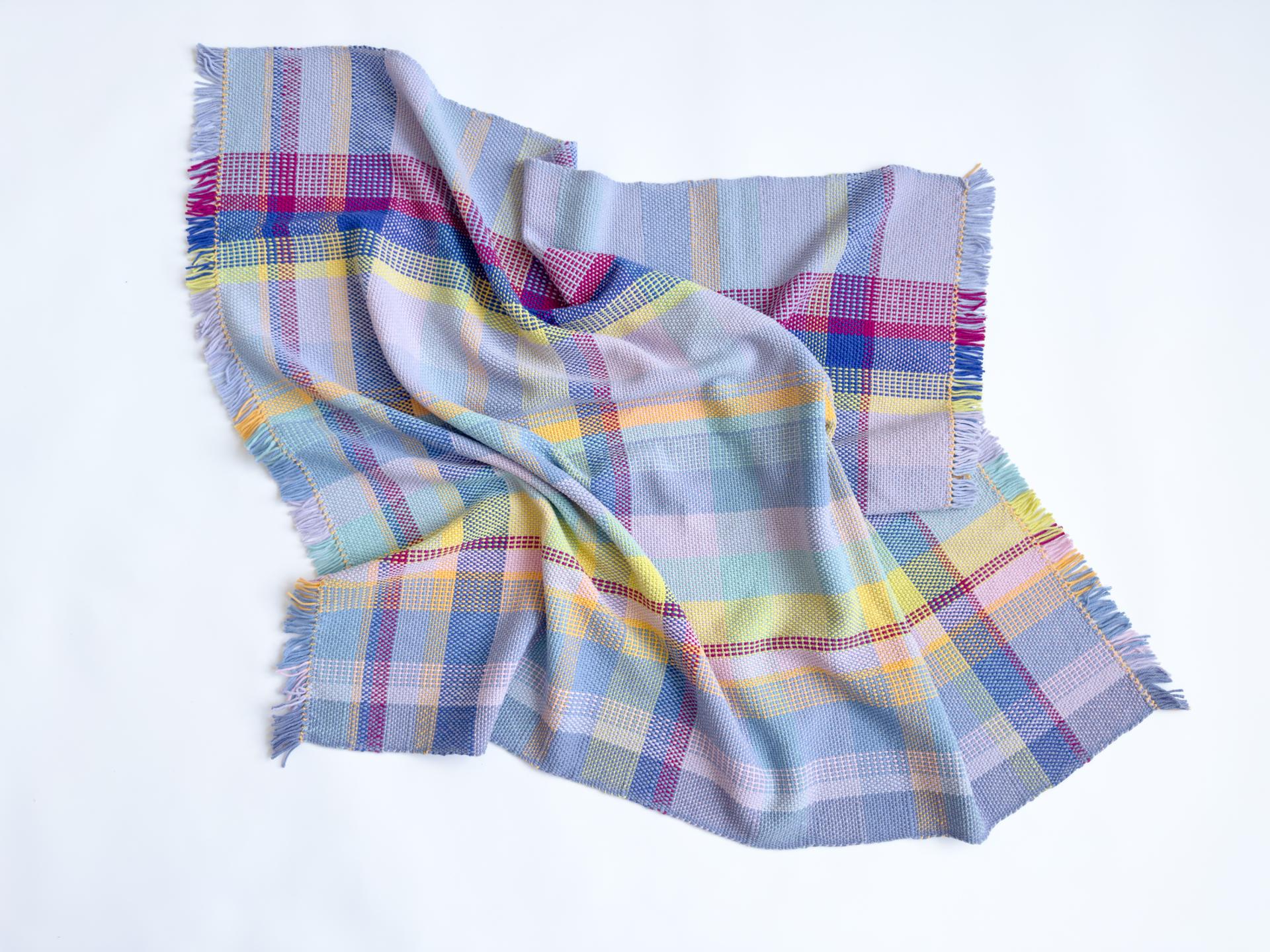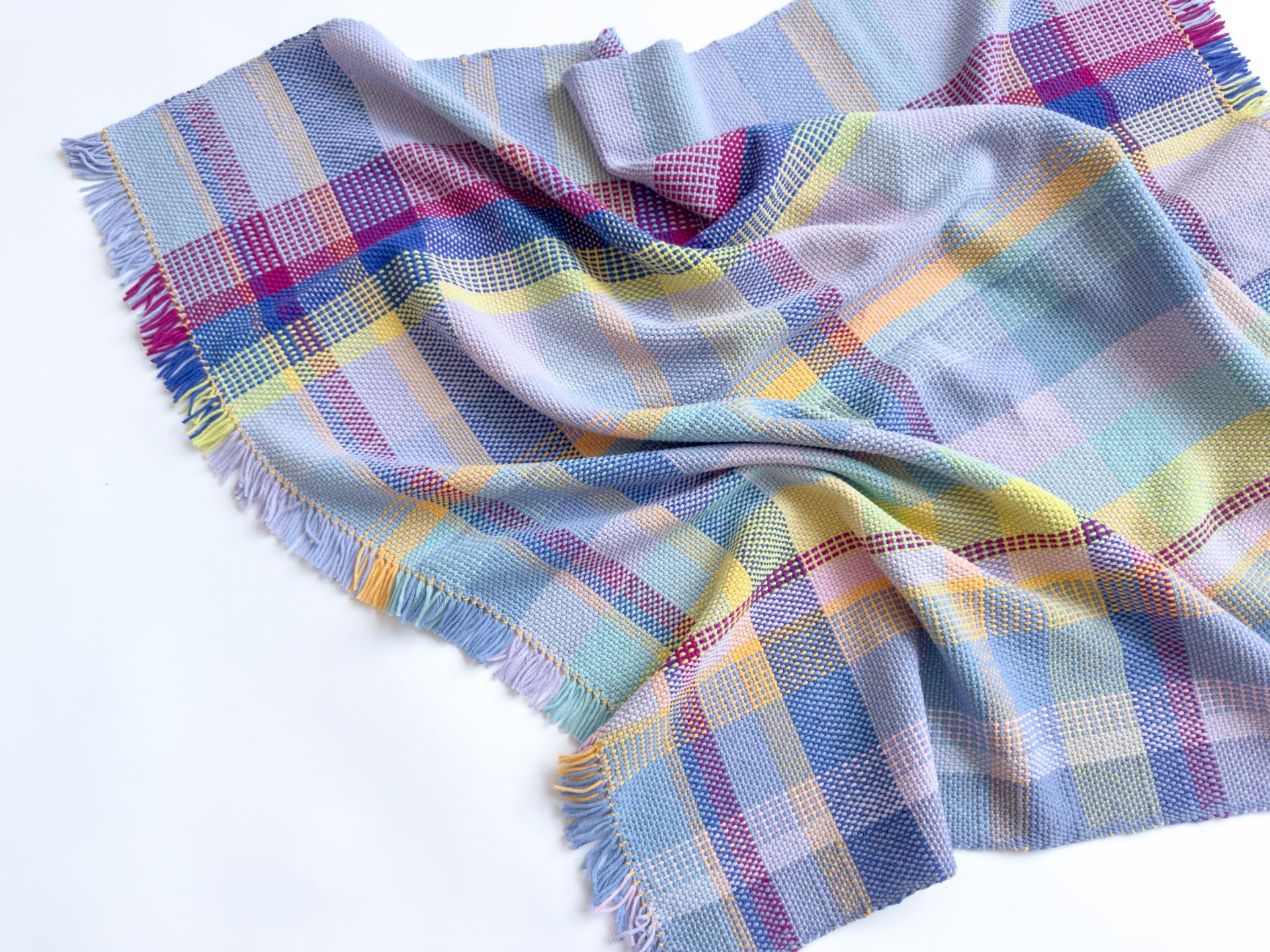 This is a one-of-a-kind blanket hand-woven with a plaid pattern.